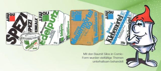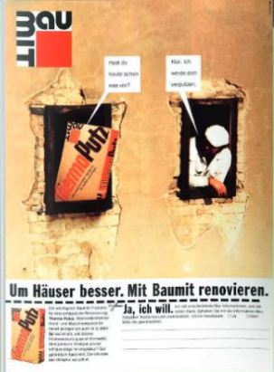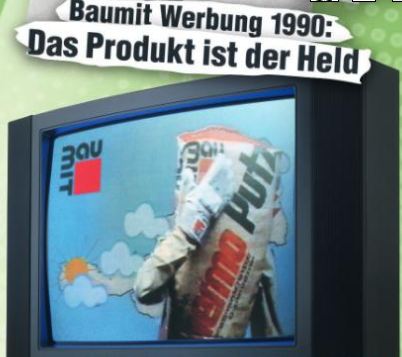 1990年, 电视和广播上播放了一则广告,进一步将堡密特作为奥地利建筑材料的优质品牌。广告中的这个产品是人格化的,并为自己代言,正符合了“产品是英雄”的原则。